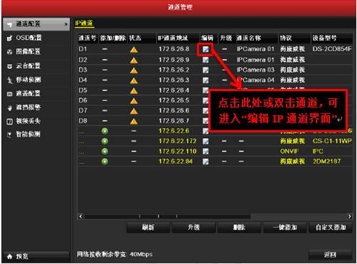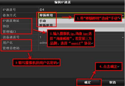 解決方法:通道管理--IP通道中,選擇已有通道,點(diǎn)擊編輯,選擇添加模式“手動(dòng)添加”。